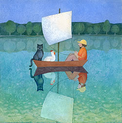 ![]() | Kommt ein Mann mit Katz und Huhn.